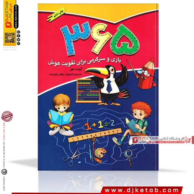 کتاب 365 بازی و سرگرمی برای تقویت هوش شامل رنگ آمیزی و ریاضی و معما و نقاشی، هوش آزمایی بازی های فکری و رمز کشایی نقاشی می باشد. 365games and entertainment to boost intelligence