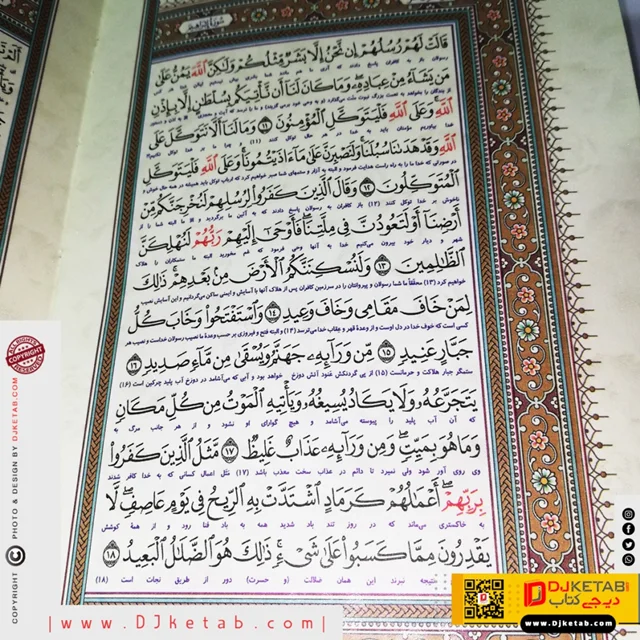 قرآن کریم کلام خدا و کتاب آسمانی و مقدس ما مسلمانان است که به وسیله جبرئیل به حضرت محمد(ص)، وحی شد. مسلمانان محتوا و الفاظ قرآن را نازلشده از سوی خداوند میدانند؛ همچنین معتقدند قرآن، معجزه و نشانه پیامبری حضرت محمد(ص) و آخرین کتاب آسمانی است. این کتاب بر معجزهبودن خود تأکید کرده و دلیل اعجازش را آن دانسته است که کسی نمیتواند مانندی برای آن بیاورد. این نسخه یکی از زیباترین کتاب های منتشر شده به صورت نفیس و چرمی است که مشخصات بارز این نسخه می توان به موارد زیر اشاره کرد: جعبه بازشو و کتاب با روکش چرم مصنوعی مرغوب | کاغذ لیزری مات فوق العاده زیبا و خاص با عطر ملایم | ترجمه دکتر الهی قمشه ای | خط زیبا و خوانای  عثمان طه | چاپ پنج رنگ متالیک | حاشیه و تذهیب فوق العاده زیبا | ابعاده بسیار مناسب و خوش دست و ...