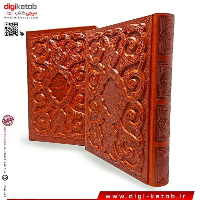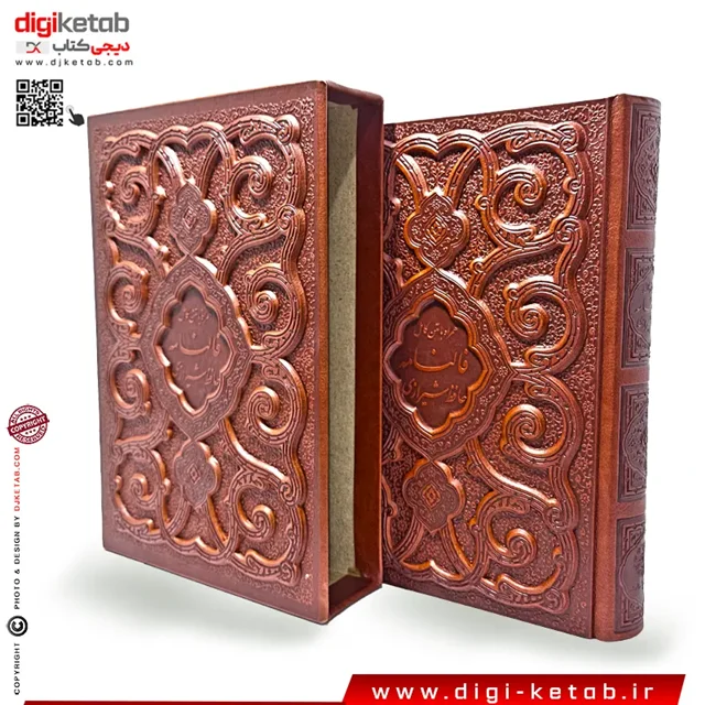 جلد کتاب نیز روکش چرم داشته و به مانند قاب برجسته می باشد .