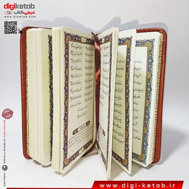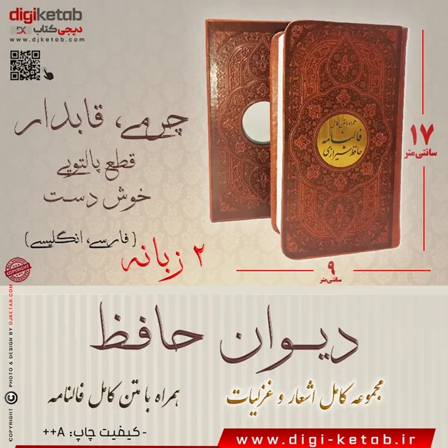 کتاب دیوان کامل اشعار و فال حافظ دو زبانه ( چرمی، قابدار، قطع پالتویی)