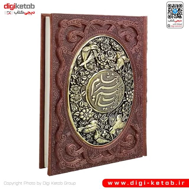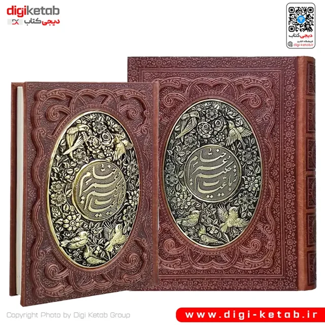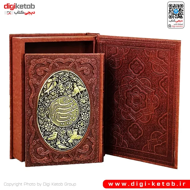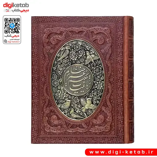 کتاب رباعیات خیام نیشابوری نفیس چرمی ,قطع وزیری با تزئین مس به چهار زبانه فارسی، انگلیسی،فرانسوی و آلمانی به انضمام تصاویر زیبای خوشنویسی و مینیاتوری؛ نسخه حاضر یکی از زیباترین و در عین حال کاملترین نسخه های منتشر شده از رباعیات حکیم عمر خیام است که قاب آن با مس تزئین شده است.این کتاب در عین حال یک آلبوم و کلکسیون نقاشی های مینیاتوری و خطاطی هست که از ابتدا تا انتهای آن توسط اساتیدی همچون همچون استاد رضا ظرفیان،  استاد رضا بدرالسماء و استاد هنرور خطاطی و نگارگری شده است که تلفیق هنر و ادبیات ایرانی را در کنار یگدیگر نشان میدهند.کتاب حاضر بر اساس تصحیح محمد علی فروغی بامقدمه علی اکبر دهخدا در حدود 290 صفحه با کاغذ بسیار مرغوب و ضخیم گلاسه به صورت تمام رنگی با صحافی دوختی و جلد زرکوب ارائه شده است.در انتهای کتاب نیز در حدود 135 صفحه ترجمه های انگلیسی،فرانسوی و آلمانی جای گرفته است. اکنون می توانید این کتاب فوق العاده را با تخفیف استثنایی از دیجی کتاب خرید نمایید