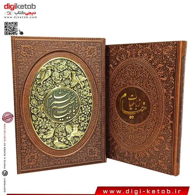 کتاب رباعیات خیام نیشابوری نفیس چرمی , مسی