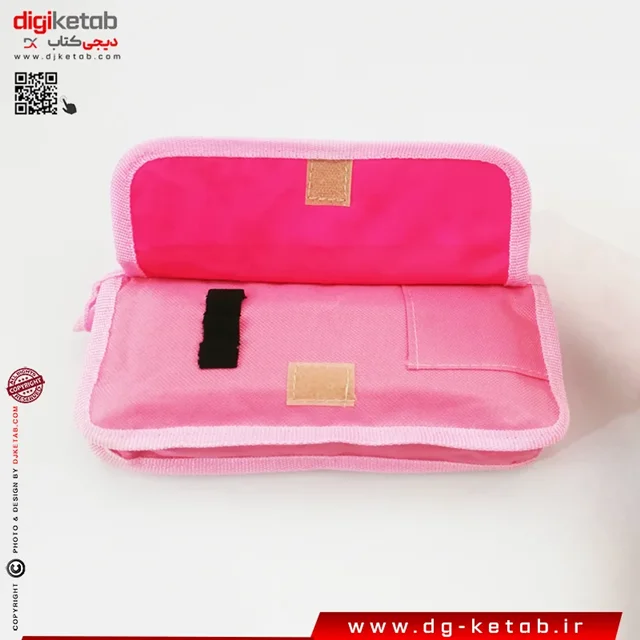 جامدادی برزنتی ضد آب تک زیب دارای یک محفظه چسبی در جلو رنگ صورتی