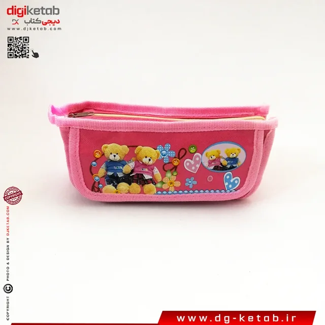 جامدادی تک زیپ طرح خرسی رنگ صورتی | کد 1207
