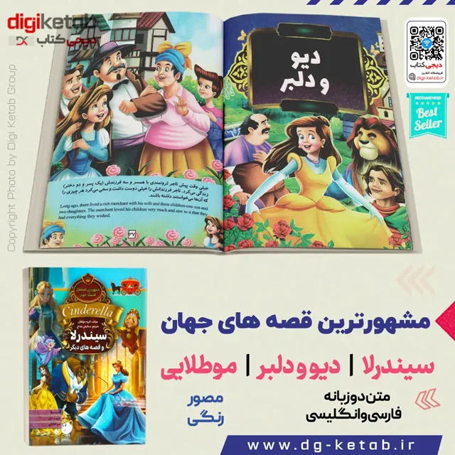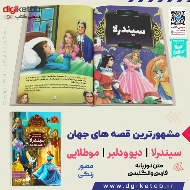 کتاب مشهورترین قصه های جهان: سیندرلا، دیو و دلبر، مو طلایی (دو زبانه)