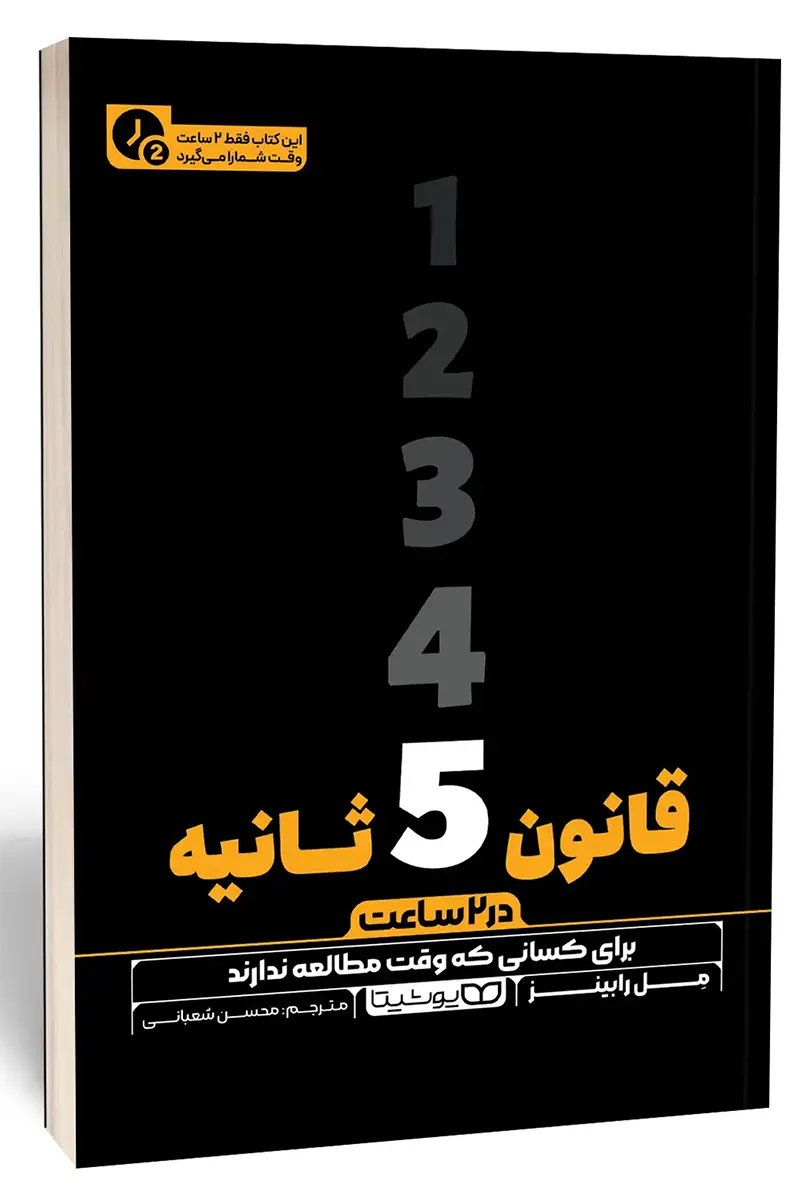 کتاب قانون ۵ ثانیه | The 5 Second Rule نوشته مل رابینز | Mel Robbins اثری تحول‌آفرین در حوزه توسعه فردی و تغییر عادات رفتاری است که به معرفی روشی ساده اما شگفت‌انگیز برای غلبه بر تردید، اضطراب و تعلل ذهنی می‌پردازد. بسیاری از افراد بارها تصمیم گرفته‌اند زندگی‌شان را تغییر دهند، اما در لحظه عمل، گرفتار ترس یا تعلل شده‌اند و فرصت‌های رشد را از دست داده‌اند. این کتاب راه‌حلی علمی و رفتاری برای این مشکل ارائه می‌دهد.مل رابینز با تکیه بر پژوهش‌های روانشناسی و تجربیات واقعی، تکنیک شمارش معکوس «۵-۴-۳-۲-۱» را معرفی می‌کند تا ذهن را به اقدام سریع و مؤثر سوق دهد. نسخه خلاصه «در دو ساعت» این کتاب، عصاره تمام فصل‌ها و تمرین‌های کاربردی را بدون حاشیه‌پردازی ارائه می‌کند. این کتاب برای کسانی که می‌خواهند اراده، نظم درونی و شجاعت تصمیم‌گیری را در خود تقویت کنند، راهنمایی عملی و الهام‌بخش است.